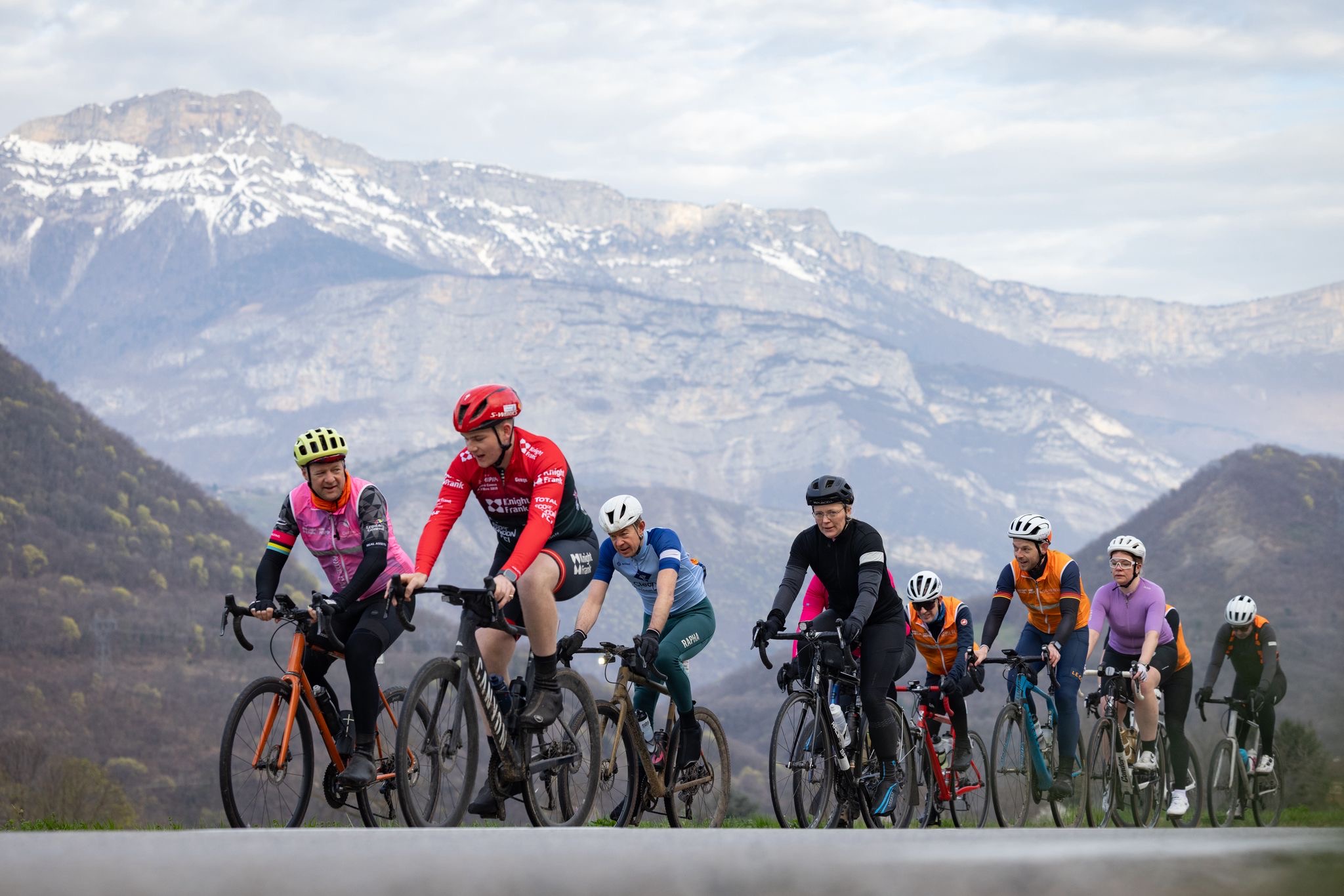 It was a lung-busting start to the day as the cyclists weaved their way through sleepy mountain villages towards the snow-capped hills ahead.